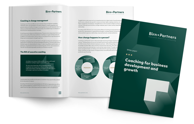 Hos Birn+Partners har vi til formål at være din betroede rådgiver. Vi hjælper dig med at finde, evaluere og udvikle talenter og udforme den rette organisationsstruktur og kultur for at nå dine forretningsmål.