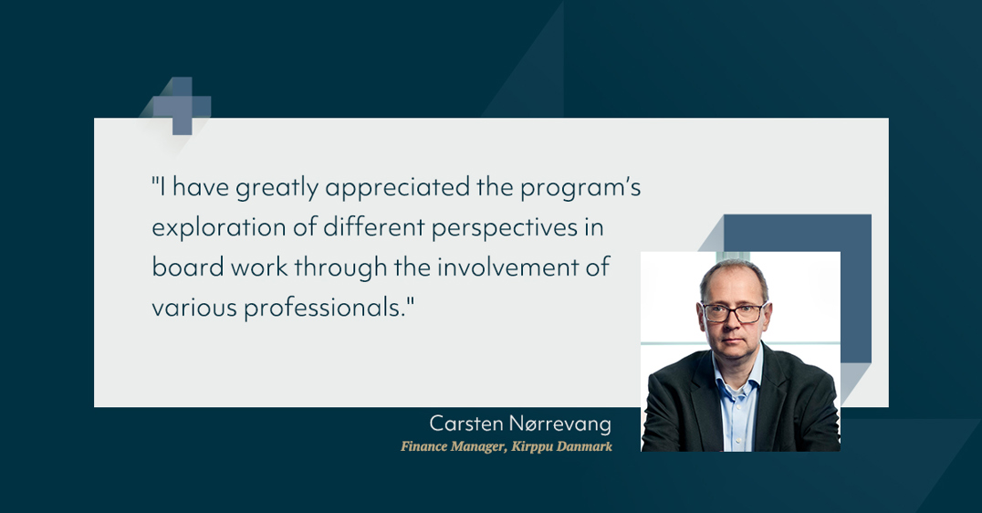 You will be taught by top executives, professional board members, and experts who know the realities of the boardroom. The teaching is interactive and varied – with a clear focus on what works in practice.