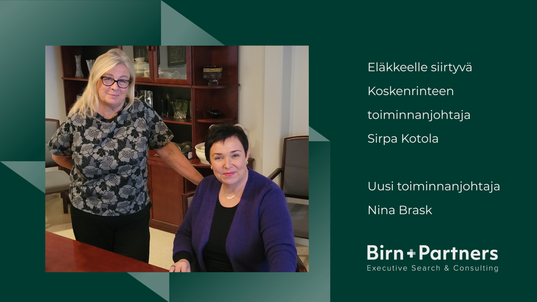 ”Usein puhutaan johtajuudesta yksityisen puolen perhe- tai pk-yrityksissä tai pörssiyrityksissä. Koskenrinteen kaltaisessa hoivayhteisössä johtaminen ei todellakaan ole yksipuolista. Onnistunut toiminnanjohtaja tarvitsee yhdistelmän empatiaa ja ihmisläheistä otetta, hoitotyön arjen ymmärrystä, liiketoimintaosaamista, regulaatioiden tuntemusta sekä vahvaa yhteistyötä viranomaisten kanssa. Johtajan on kyettävä tasapainottamaan strateginen kehittäminen ja arjen operatiiviset haasteet, tällaisessa työssä nähtävä muutokset mahdollisuuksina ja rakennettava yhteisö, jossa henkilöstö ja asukkaat voivat hyvin. Hoivakodin johtaja onkin samalla ihmisten johtaja, palveluliiketoiminnan kehittäjä, sääntelyn tuntija ja yhteiskunnallinen vaikuttaja ja juuri tämä moniosaaminen tekee heidän työstään mielestäni hyvin merkityksellistä”, toteaa haastattelun tehnyt ja Koskenrinteen kumppanina toiminut ja johtajiin tutustunut Birn+Partners Finland Oy:n toimitusjohtaja Mona-Maria Ilola.